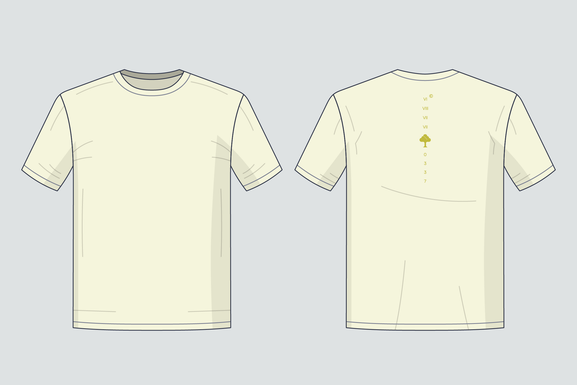 Schweres Herren T-Shirt | Eingesetzte Ärmel | 1x1 Rippstrick am Halsausschnitt mit Doppelabsteppung | Nackenband mit Fischgrätmuster | Breite Doppelabsteppung an Ärmelenden und unterem Saum